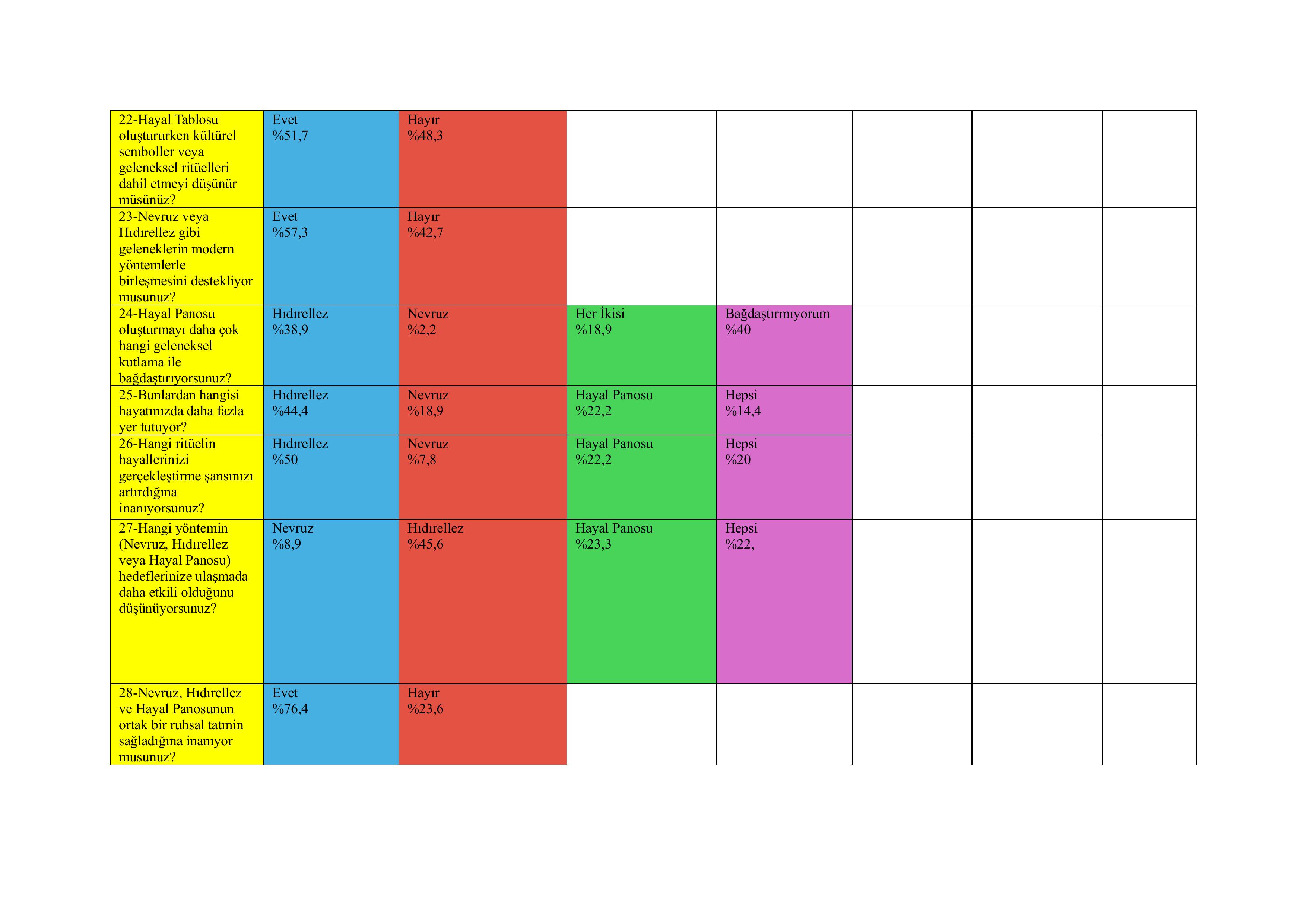 Dönüşümleri: Manifest Tablosu / Hayal Panosu Adlı Makalenin Anket Soru ve Cevaplarının Tablo Gösterimi